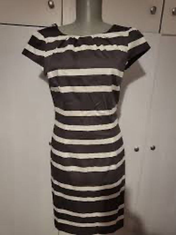 Платье в полоску. Без дефектов. Есть лямки под пояс,в комплект не входит. Ткань очень похожа на прикосновение на хлопок, позволяя полиэстер укащано. Длина от плеча 93 Плечи37 Рукав 11 Пог 41-44 Пот 37-38 Бедра 44-46