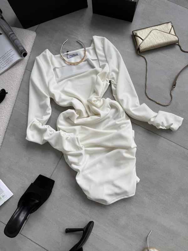 Облягаюча міні сукня з зборкою по боках сукня з довгим рукавом