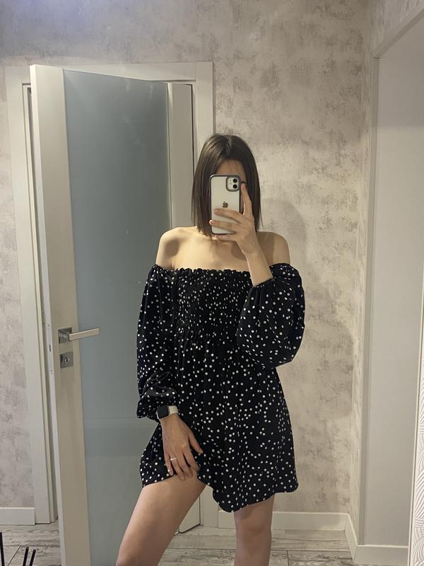 Сукня в горошок) Дуже в гарному стані, одягнена декілька разів, розмір ХС/S На фото зріст моделі 178, тобто коротка для високого зросту не буде Легенька, можна поєднати з багатьма луками, зверху на резинці, рукава вільні