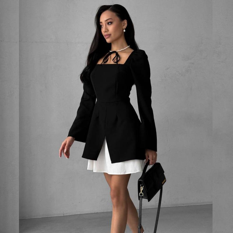 ХІТ 🔥Трендовое женское платье мини с длинным рукавом и квадратным вырезом, приталенная, черная с белым акцентным подъюбником - элегантный стиль для праздников и повседневности Cукня Модель #575 Тканина: костюмка, нижняя юбка из софта Размер: 42-44, 44-46 , 46-48 Цвет: черный Есть замеры Есть видео обзор Перед оформлением заказа обязательно ознакомьтесь с разделом "Про меня" на странице магазина или уточняйте все детали в личных уведомлениях. Нажимайте кнопку "Подписаться", чтобы не пропустить новинки, выгодные акции и распродажи! платье черное