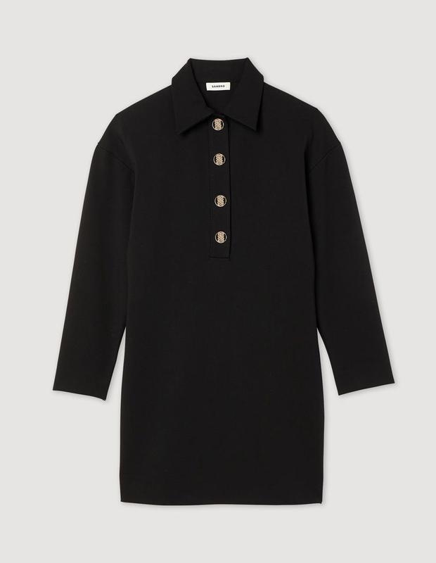 Коротка чорна сукня плаття sandro з довгими рукавами та сорочковим коміром на текстурованих ґудзиках. Сукня має красиві обʼємні рукави із підплічниками. Прикрашена акцентними ґудзиками у японському стилі. Артикул: SFPRO02529 65% віскоза, 30% поліамід, 5% еластан SANDRO Зараз в наявності на офіційному сайті Для паризького шику з сучасним відтінком Sandro ідеально підходить. Витончена вінтажна естетика поєднується з сучасністю в жіночних сукнях, невимушеному крої, вишуканому трикотажі та розкішних предметах першої необхідності. Довжина рукава 53 Полуобхват грудей 46 Полуобхват талії 38 Полуобхват бедер 40 (Сукню зробила довшою, за рахунок додаткового відвороту, так само можно зробити із рукавами за потреби. Вказано виробником) Підписуйтесь.Дивіться мій профіль з рідкісними та унікальними виробами. Тільки преміум тканини і люксові бренди.