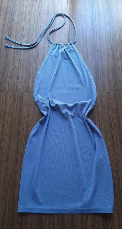 Пляжное трикотажное мини платье на завязках небесно голубого цвета shein
