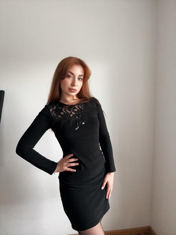 Чорна сукня з довгим рукавом та мереживним декором 🌙 Твій безпрограшний варіант на будь-який вечір 💫 Розмір S/M ( по бірці Л, маломірка) Тканина еластична, має підкладку Стан нової Довжина 89 см, Пог 40 см, Пот 33 см тягнеться, Поб 46 см тягнеться, рукав від шиї 70 см