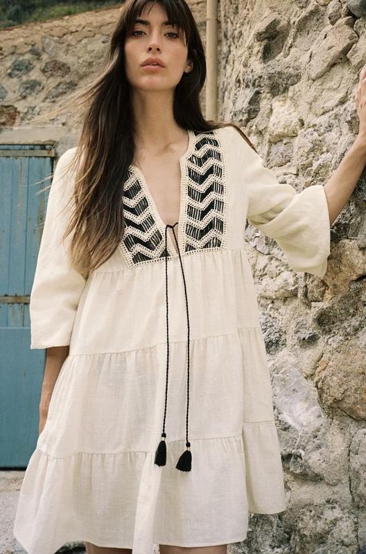 Жіноча коротка сукня з вишивкою та v-подібним вирізом, пісочний колір s zara