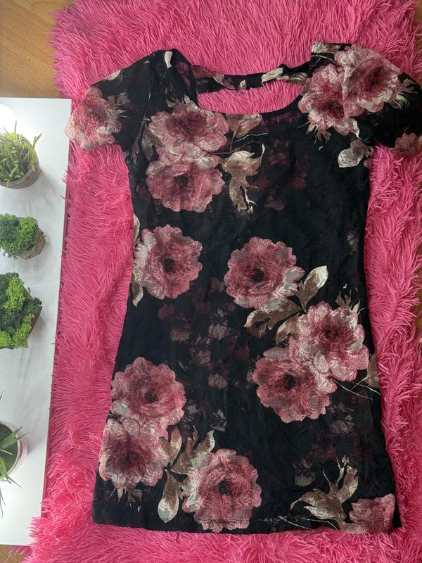 Прекрасне прозоре плаття, під низ можливо одягнути довгу чорну майку, може бути як туніка, гарний квітковий принт, може бути на пляж на купальник Розміру л/хл Заміри довжини та ширини на фото