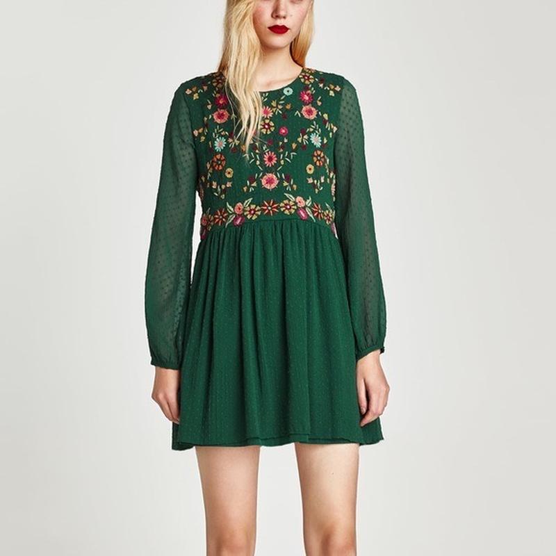 Супер мила зелена сукня з квітковою вишивкою. Ніжні рукави. Розмір М Довжина 83 см Рукав 60 см Є невеличкий дефект (відірвалась лямка для ґудзика) З умілими ручками можна без проблем пришити