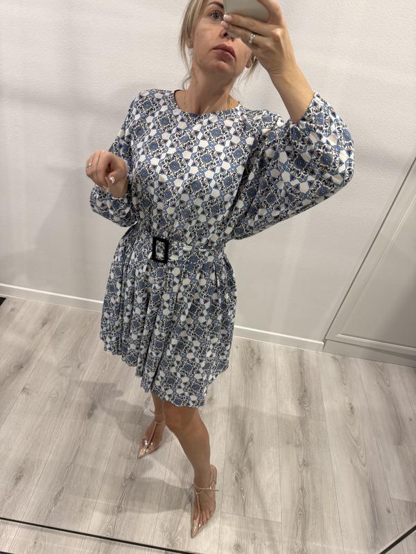 Коротка сукня, з легкої тканини, яка дуже приємна до тіла, є поясок, талія на резинці.