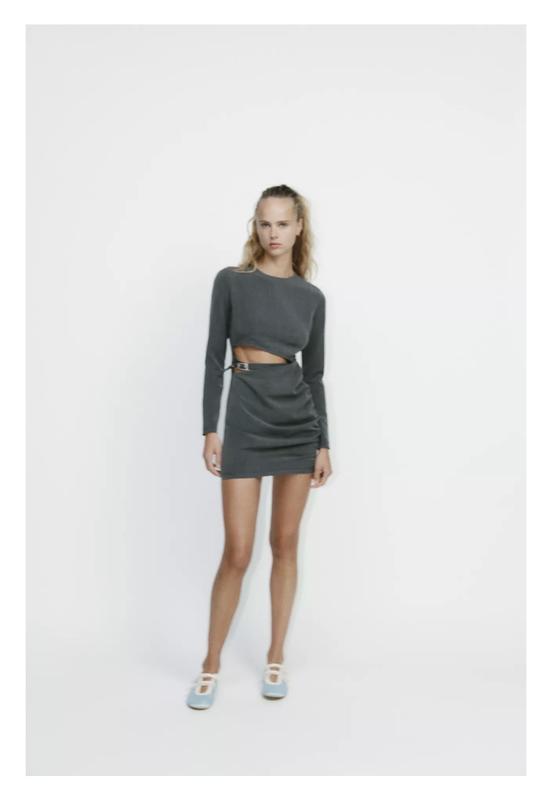 В наявності ✔️ Розмір M,L Трохи маломіри. Коротка облягаюча сукня з круглим коміром і довгими рукавами. Виріз на талії з петельками для ременя та прихована блискавка ззаду.