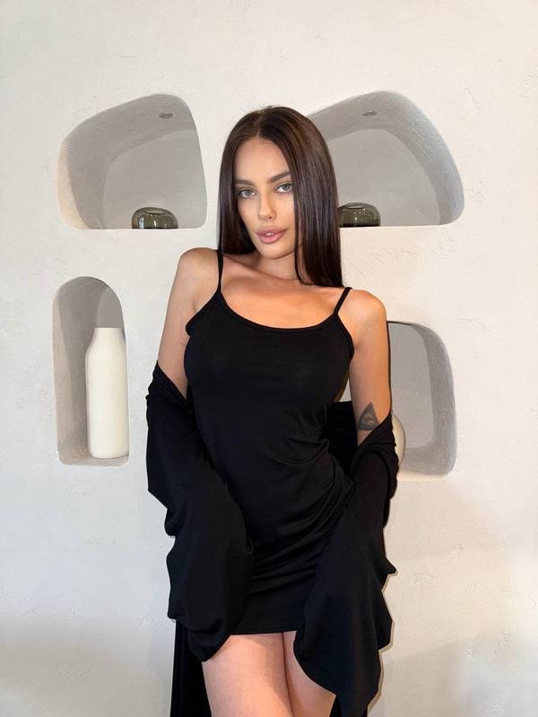 Комплект 2в1 (кардіган+сукня) ▪️Модель: 1650 ▪️Тканина: натуральна віскоза (Туреччина) ▪️Розмір: 42-46 (onesize) ▪️Колір: чорний, банановий, шоколад, барбі, сірий Розкішний комплект, в якому всі погляди будуть твоїми🔥 Дихаюча натуральна тканина, яка ідеально підходить на спекотні літні дні🤍 Параметри: Сукня: довжина 85 см; ОГ 88-99 см; ОТ 64-76 см; ОС 90-102 см Кардіган: довжина 140 см; ОГ до 120 см