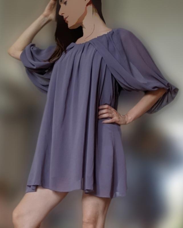 Платье женское легкое размер м с рукавом сиреневое