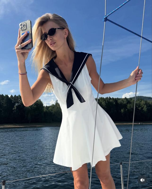 Новое белое платье с воротничком в моряцком стиле Zara⚓️💙 Из новой коллекции 2025 года С официального сайта Плотна тканина Размер S Пог 41 см, на объем груди до 80 см Пот 33 см Поб свободно Длина 82 см Есть в наличии ✅ Быстрая отправка в день заказа💝