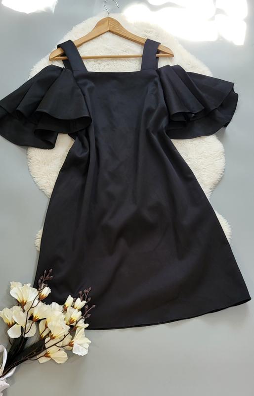 Стан ідеальний ✔️ Вечірня сукня А-силуету з рукавами-рюшами від дорогого бренду. Тканина цупкий атлас на підкладці. Колір чорний на фото не передається. Заміри: довжина 99,5, груди півобхват 45,5, талія 52