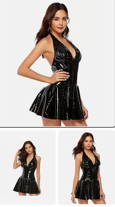 Сексуальное женское облегающее мини-платье из искусственной кожи с V образным вырезом и открытой спиной. Сексуальное мини-платье подчеркнёт ваши очаровательные изгибы. Отлично подойдёт для ночного клуба, вечера, вечеринки, коктейля и т. д. Размер XL ориентируйтесь на замеры: длина 85 см (замер от шеи как на фото) ПОГ 52-57 см латекс тянется ПОТ 45-50 см