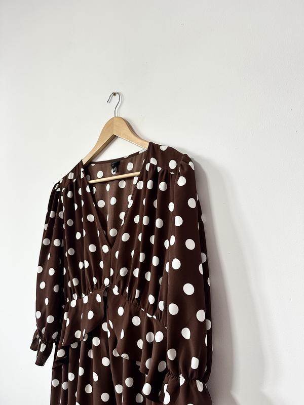 Красивое атласное платье цвета шоколад в горох river island🌿