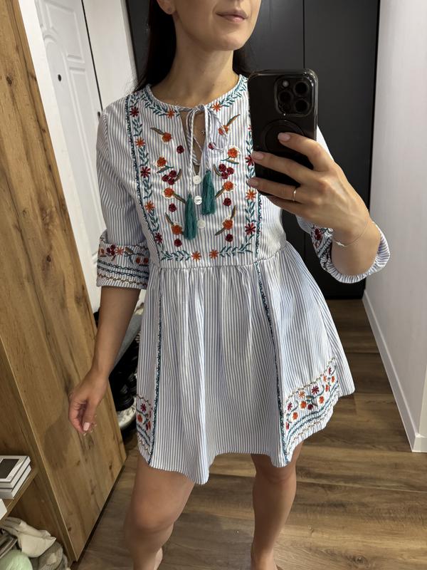 Коротка вишита сукня, розмір xs-s, вільного крою з рукавчиками воланами