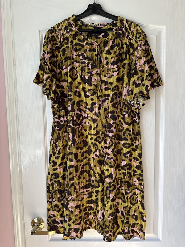 Сукня з завʼязками на грудях та еластичною резинкою на талії. Довжина 102 Ширина в грудях 66 Стегнах 70