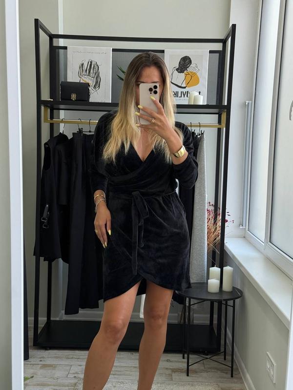 Жіноча коротка міні сукня з велюру з рукавами чорного кольору