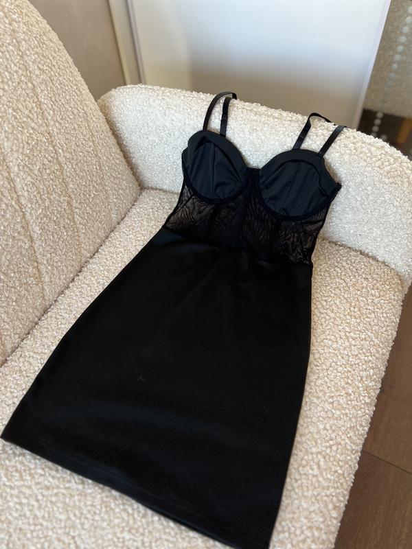 Сукня чорного кольору,ідеально сідає по фігурі. Б/у(одягнута один раз),стан ідеальний,без дефектів. Розмір 34 xc