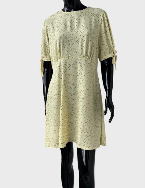 100% віскоза Розмір 16 Пог 57 Пот 43 тягнеться до 51 за рахунок резинки на талії Поб 66 Довжина 91 Плечі 40