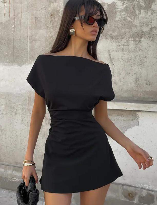 Жіноча міні сукня, чорного кольору розмір с, проте на зріст 170 занадто коротка, взагалі не одягала, виглядає так само як і на фото