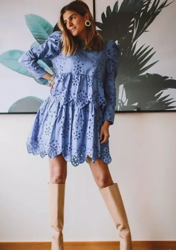 Хлопковое миди мини платье прошва Zara. Длинный рукав . Ярусный свободный фасон. Ворот небольшая стойка. Есть подкладка. Размер ХС Длина 84 пог 45 пот 42 поб 46