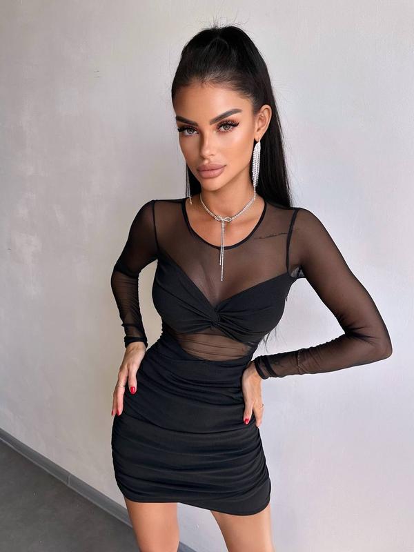 Сукня з драпіруванням ▫️тканина: креп дайвінг , сітка ▫️розмір: S та М