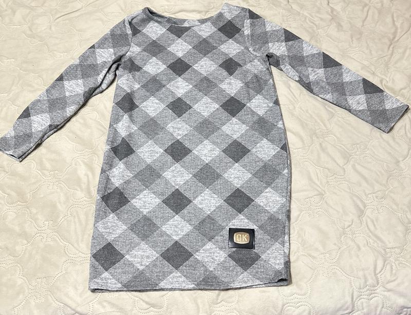 Сіра сукня з геометричним/клітинним принтом, трикотажна, довжина 89 см, обхват 102 см, рукав 58 см — зручна для щоденного носіння. ✅Одягнена 1 раз , стан нової