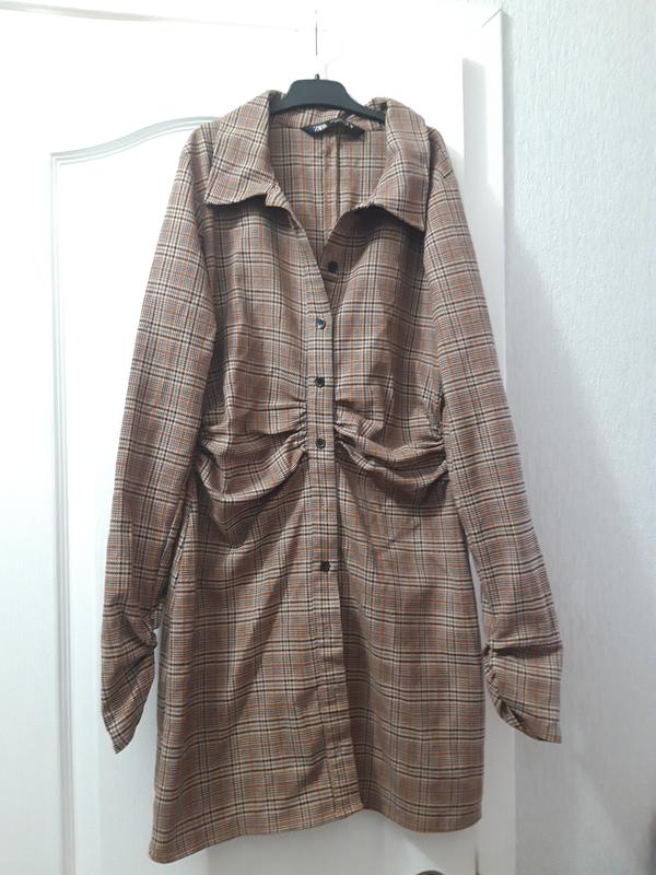 Симпатичное мини платье-рубашка с длинным рукавом, красиво подойдет для офиса.