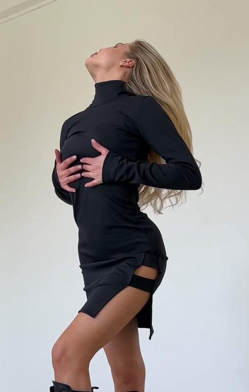 Трикотажна міні сукня з довгими рукавами та розрізом на нозі