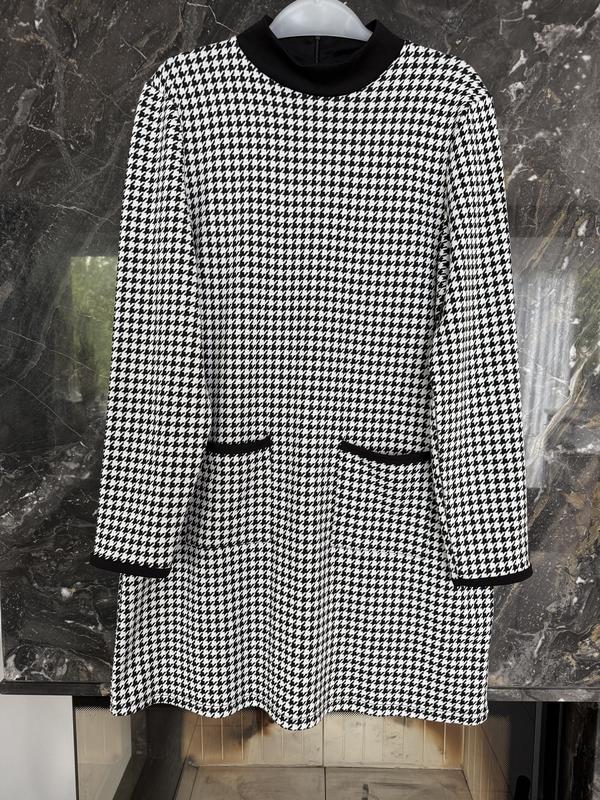 Трендовое платье гусени лапки, Длина 88, Пог 54. Пот 53, пос 58, плечи 42, рукав 62, пройма 29, бицепс 20, тянется, качество отличное, состояние новый, вискоза 20%, эластин 1%. Полиэстер 73%,