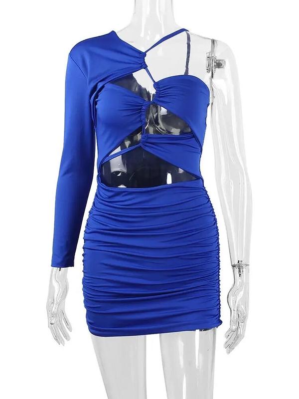 стильна міні жатка синя сукня з вирізами