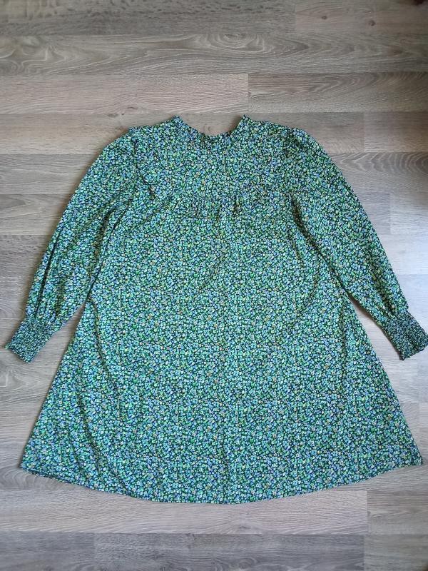 Дуже гарна легка сукня, по переду оформлена рюшем, пишний рукавчик понизу широка резиночка. Ткань полиэстер. Длина 86; пог 50; рукав 57. Не тянется.