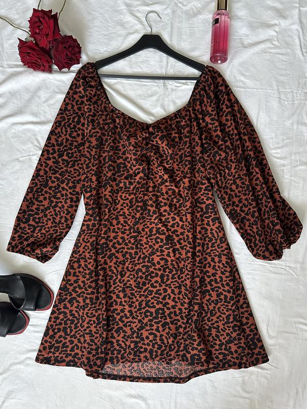 Яскрава сукня з анімалістичним принтом у відтінках червоного та чорного. Має довгі рукави з легким об’ємом та еластичними манжетами, що додає ніжності образу. Горловина у формі серця з легким присборенням спереду підкреслює декольте. Легка та комфортна тканина робить сукню ідеальним вибором як для щоденних образів, так і для вечірніх виходів. 🔸 Колір: червоний з чорним леопардовим принтом 🔸 Розмір: (20) 🔸 Стан: дуже хороший( ,є ковтунці коли сильно придивитись можна трішки помітити) Стильний варіант для впевнених у собі жінок, які люблять бути в центрі уваги.