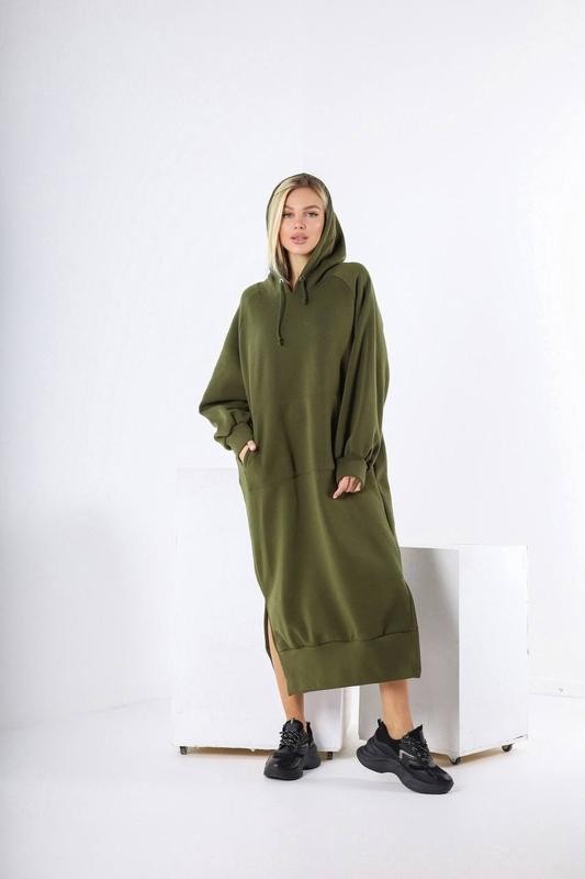 Сукня №469/0227 розмір 42-46-4шт тканина турецька тринитка на флюсі Тепла вільна сукня з кишенею кенгуру