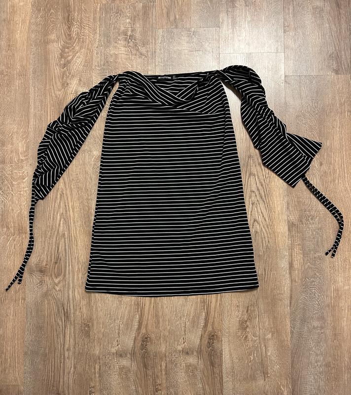 Жіноча незвична сукня / сарафан в смужку , має рукави цікавого крою( плечі повністю відкриті)