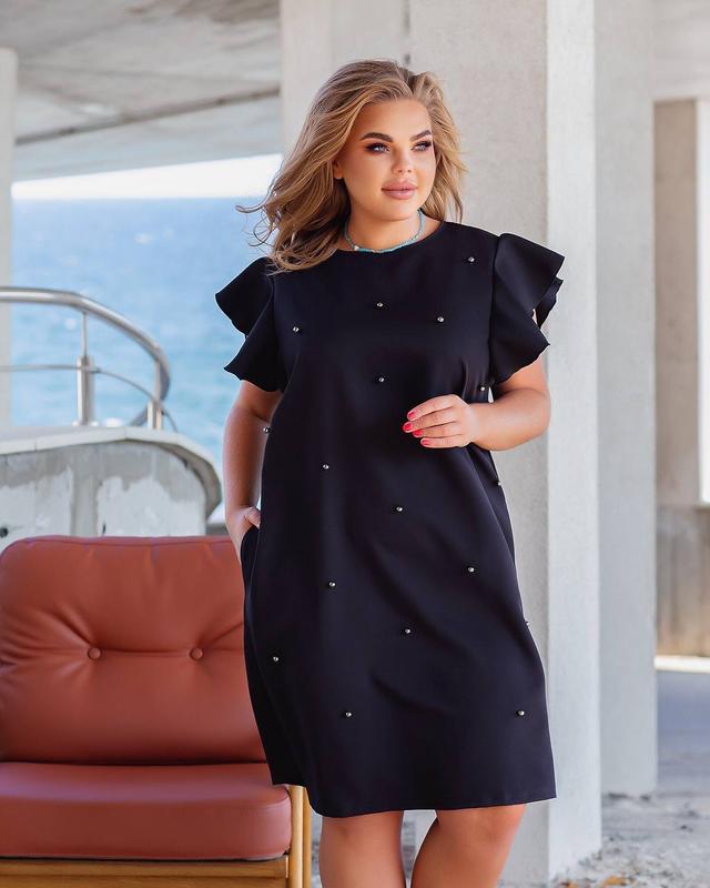 Сукня Модель 099 Тканина: креп барбі відмінної якості. Колір: чорний. Розміри: 56-58. Розмір 56-58 ОГ 128; ОБ 134; ДЛ 103.