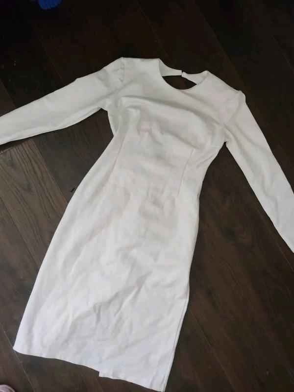 теплое белое платье, размер хс, пишите подписи много вещей ✨ позади спинка открытая треугольником и бусинка застежка) Грудь 86-100, талия 64-80, бедра 90-104, длина 91