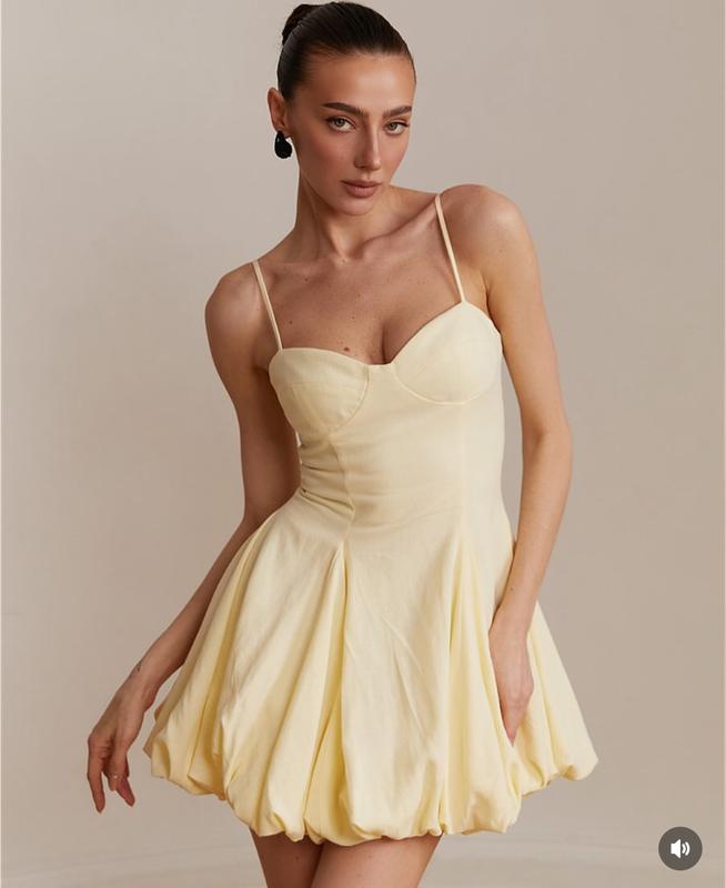 Сукня в стані нової, одягалась 1 раз. Дуже гарна, сідає як гарно на будь яке декольте!! Розмір M К M: Довжина виробу - 64.5 см., Ширина по грудях - 45 см., Ширина по талії - 36.5 см. Сукня міні виконана з натурального льону, що дарує відчуття легкості. Підклад з м’якої бавовни забезпечує комфорт. Відкриті плечі в поєднанні з бретелями створюють ніжний акцент на лінії декольте. Об’ємний низ додає силуету повітряності. Потайна блискавка гарантує зручність, а регульовані бретелі дозволяють ідеально підігнати посадку. Купувала за 3100 .
