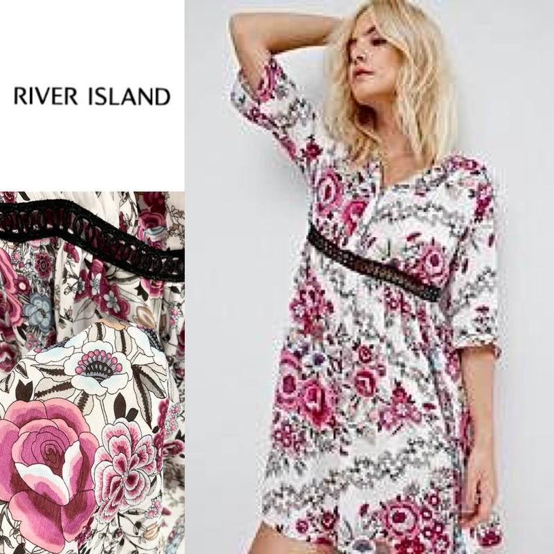 Красивое платье - накидка с нежной, легкой ткани ярких, красочных расцветок, от известного бренда River Island. Рукава три четверти, до талии спереди идет застежка на пуговицах, талия сзади на резинка, спереди ажурная черная вставка, можно носить с шортами или бриджами, ткань - полупрозрачная полупрозрачная! Размер указан: 12/ 38 идет на M/ L Замеры: длина изделия по спинке - 80 см., полуобхват груди - 51 см., тянется до полуобхват - 54 см., полуобхват талии - 40 см., тянется до полуобхват - 44 см., по бедрам свободно! (на фото одето на размер: M) Made in Romania Состав: 100%- полиэстер