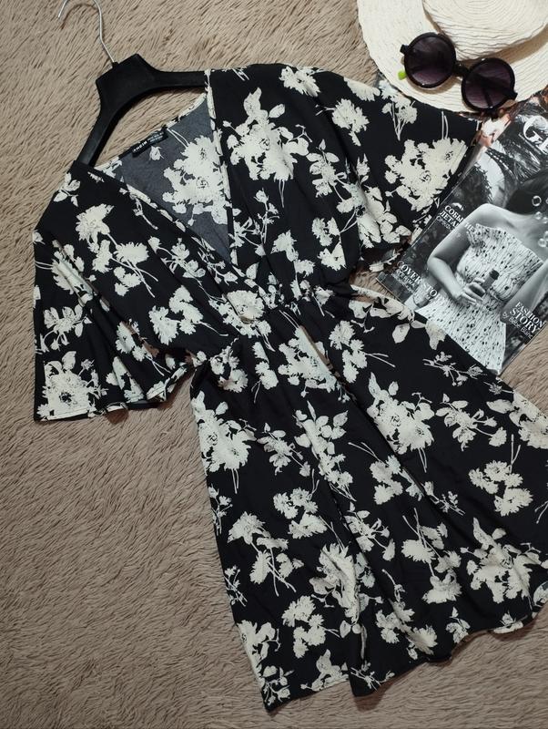 В идеальном состоянии. Красивое цветочное платье. Тканина легка, не тягнеться. Размер 6/34/XS, но смотрите по замерам Замеры (полуобхват): Груди 42 Талия 30 (тянется до 46) Стегна 59 Длина от плеча 79