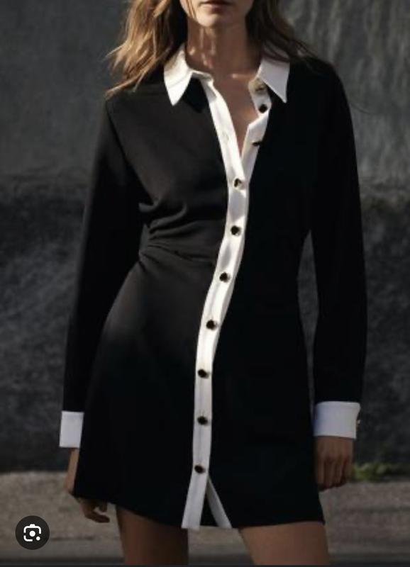 Сукня міні зара з комірцем та акцентними ґудзиками. Гарне невелике драпірування на боках та спинці, які приховають все) На розмір л-непрвну хл