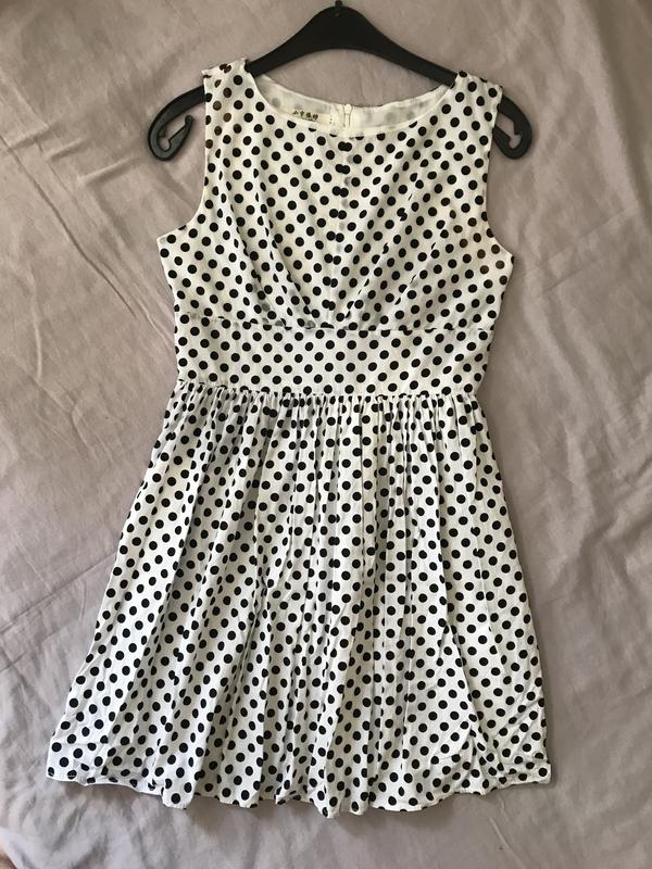 Сукня чудової Люкс якості Бірочки зі складом тканини немає Схоже на котон з еластаном чи віскозу з еластаном Стан плаття гарний 1. Маленький нюанс (на двох останніх фото) - на правому плечі 5 шт. горошинок трошки світліші, вони коричневі, 2. Під правою пахвою теж штук 5 горошинок коричневі, але!! це зовсім або майже не помітно , на мій погляд. Це не полиняло, а скоріш за все фабрична особл. тканини. і воно зовсім не впливає на вигляд. Якщо Ви будете іншої думки щодо цього після отримання платтячка - я поверну Вам кошти навіть при замовленні «на карту». Заміри: Довжина 83 см НОГ 41 см зі сторони спинки, попереду ліф трохи призбираний, то можна до 41 см додати ще 3-4 см, але не розраховуйте, що дуже потягнеться НОС (по підкладці) до 48 см Талія 37х2 Прати легко в машині Платтячко дуже гарне і дуже-дуже приємне на дотик Одягалось мало, дівчата виїхали, речі розпродуєм