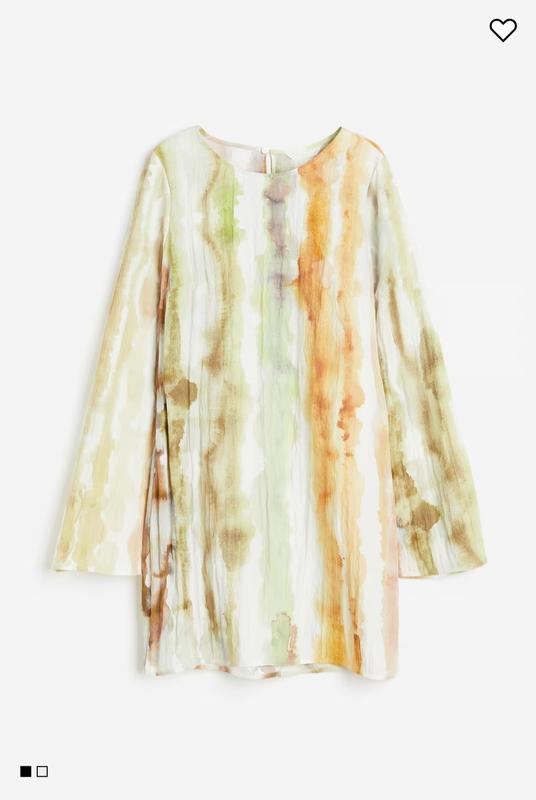 Стильна міні сукня від H&M, гарного абстрактного кольору, рукава розширені до низу, розмір М, стан ідеальний, як нова. Склад тканини штучний, але на дотик схожа на модал, жатка.