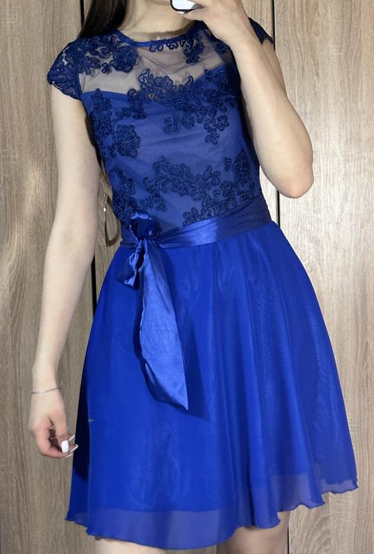 Легка, шифонова, святкова сукня синього кольору в ідеальному стані Вдягалася 1 раз, підійде на розмір XS та S Має пояс в комплекті