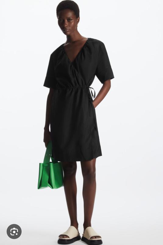 Платье COS из текущей коллекции – стильное решение на каждый день. ✔️ Состав: 80% лиоцелл, 20% лён - легкий, дышащий и приятный к телу. ✔️ Лаконичный крой на запах с акцентом на талии. ✔️ Удобные карманы - маленькая, но такая важная деталь. ✔️ Базовый черный цвет - всегда универсален. ✔️ Размер L Плечи 51 см Рукав от горловины 39 см Подмышками 53 см Талия регулируется Длина 100 см Это платье - идеальный выбор для тех, кто ценит комфорт и современную простоту 🌿