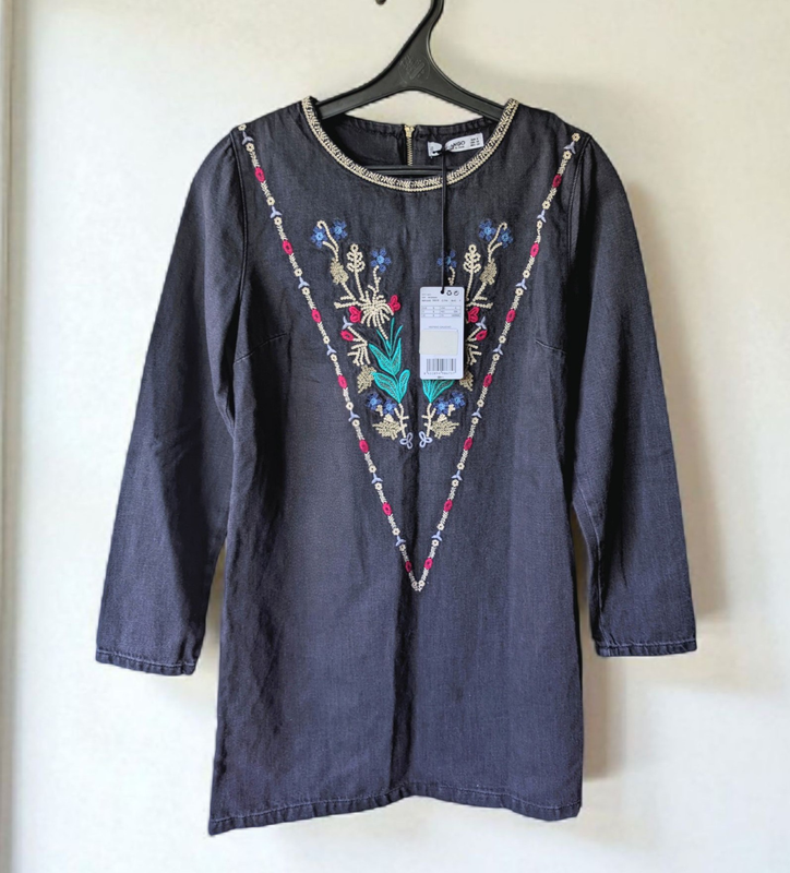 Джинсовое платье с вышивкой Mango ширина в груди 44 см длина 78 си длина рукава от плеча 57 см
