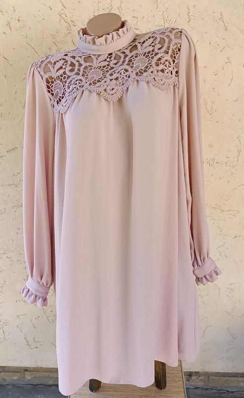 Пудровое нежное платье свободного кроя размер С/М полу обхват груди- 51 ширина плечей - 37 длина рукава от плеча - 63 длина - 87 Талия и бедра свободно. Тканина не тягнеться.