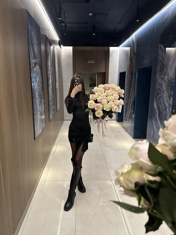 Замовляла в інстаграм. Вдягалась сукня 1 раз. Дуже гарно сідає по фігурі, мій зріст 176 см, розмір ХС-С , на фото параметри 90-60-90 Сукня зі шлейфом на поясі . В мене на фото завʼязано два вузли