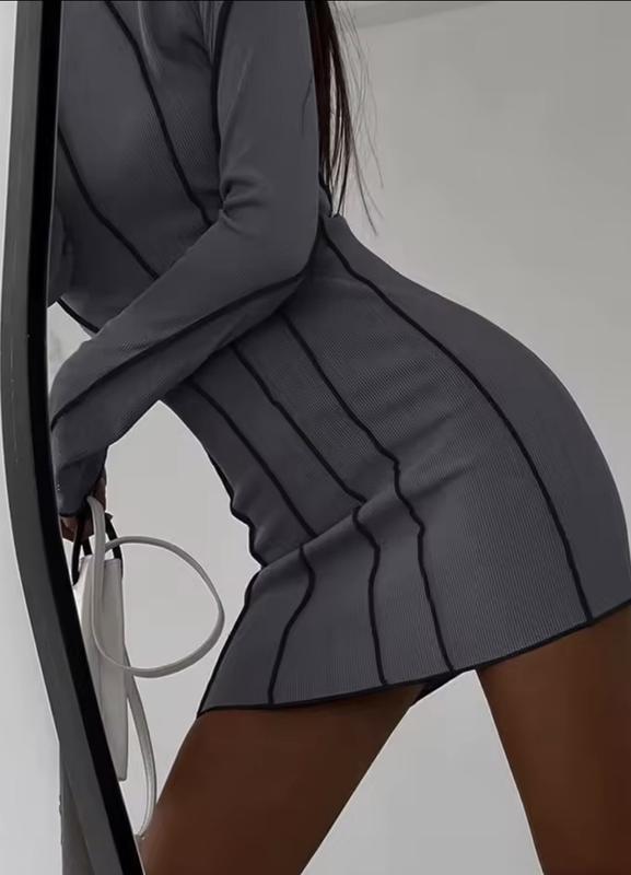 Плаття зі швами назовні, сіре з чорним. Розмір S, ог : 78см, от: 60см, об: 80см довжина: 83см. Може трішки тягнутись на см 5, завдяки рубчику