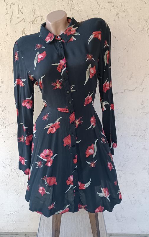 Короткое платье в цветочный принт. Размер ХС-С Полу обхват груди - 47 Полу обхват талии - 39 Полу обхват бедер - белоснежно Длина - 84 Рукав от плеча - 60